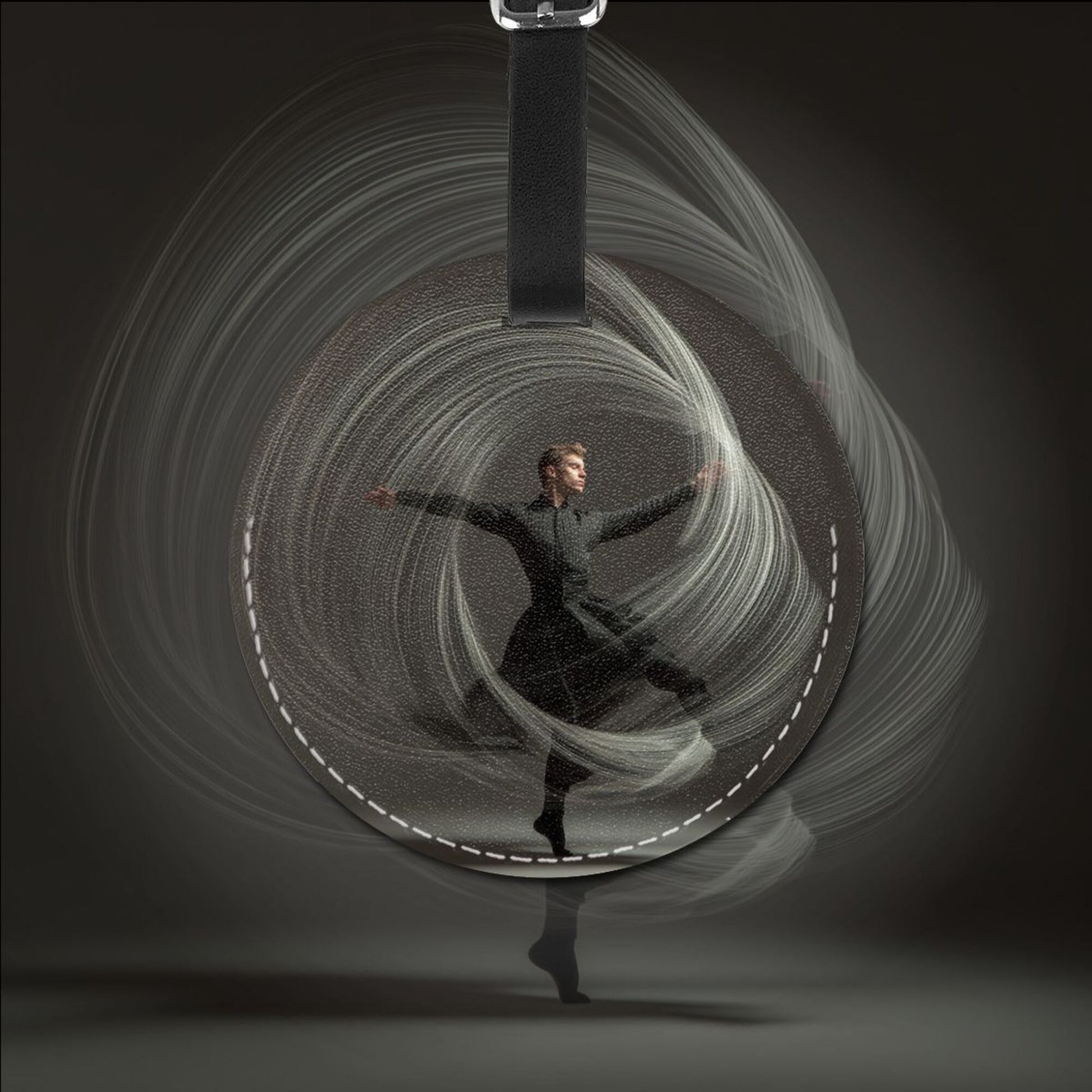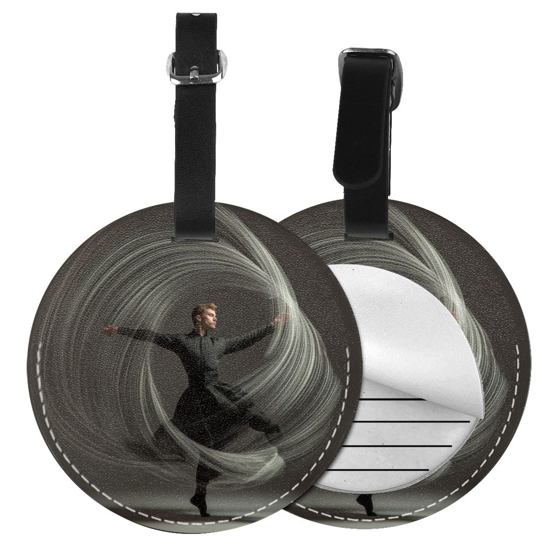 Artistic Spinning Figure Round Leather Luggage Tag Set of 2, Travel Bag Anti - loss Identification Tag (Diameter 3.7in/9.8cm )