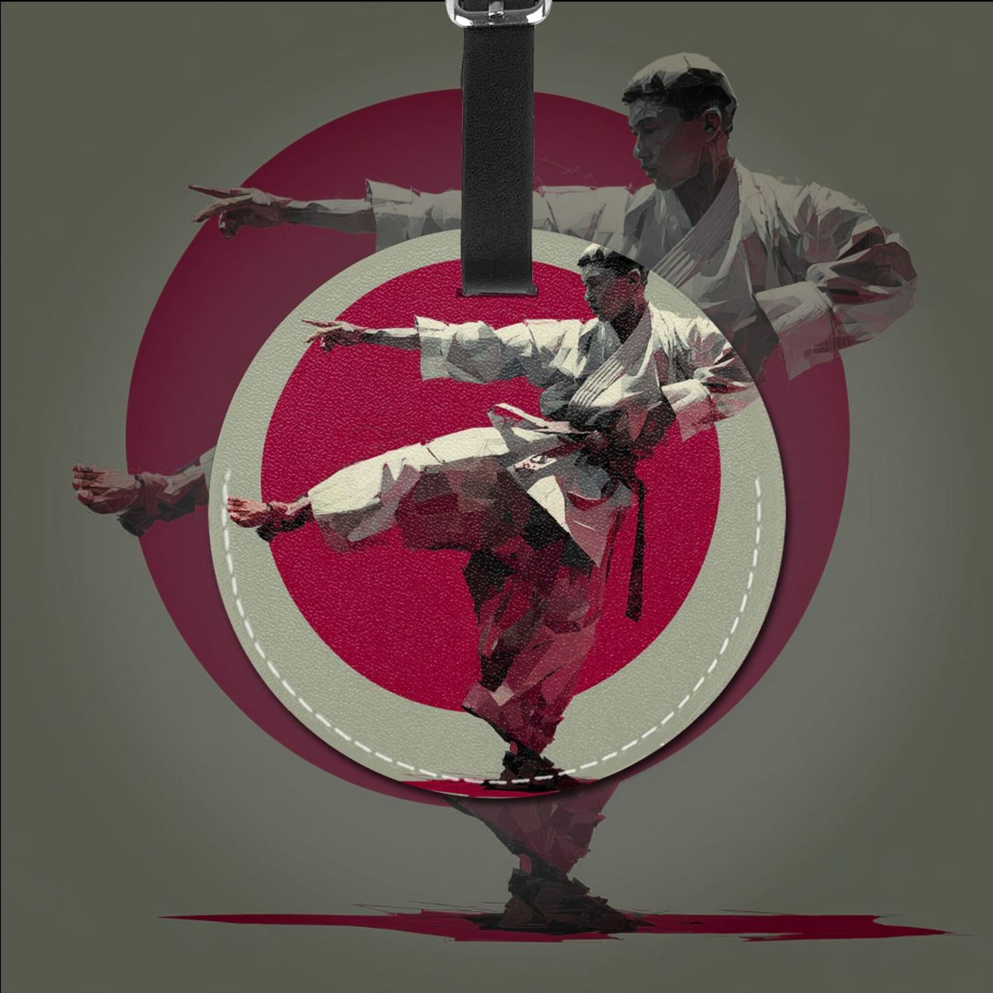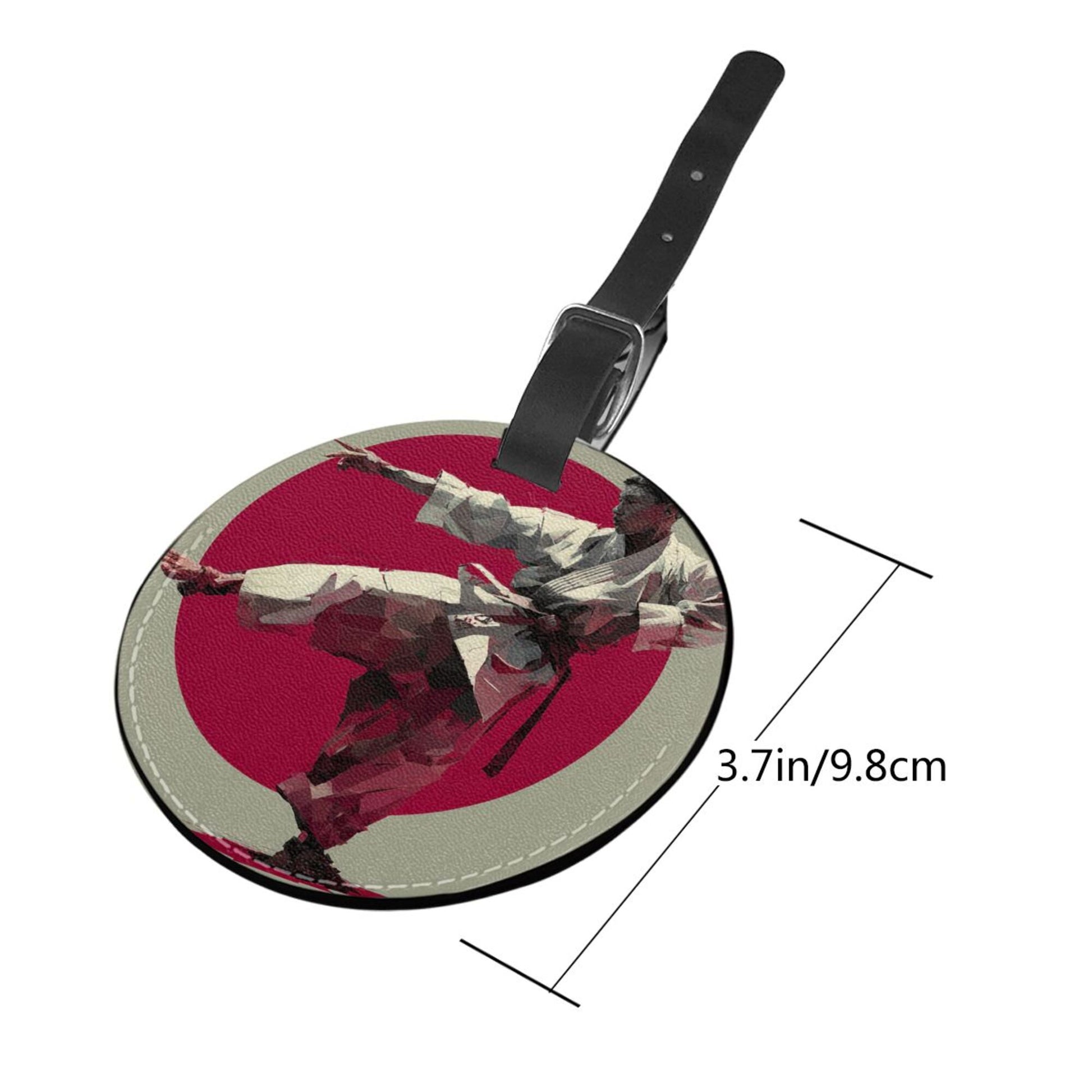 Martial Arts - Themed Round Leather Luggage Tag Set of 2, Personalized Travel Bag Anti - loss Identification Tag (Diameter 3.7in/9.8cm )